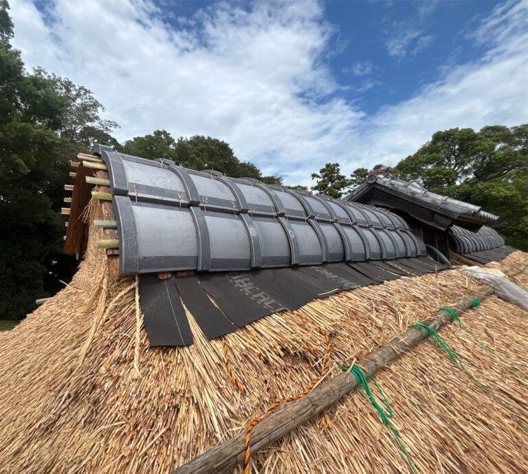 25メートルにもおよぶ長大な長屋門から屋敷内に入ると、茅葺屋根の重厚な作りの主屋、格調の高い書院、コケに覆われた趣のある庭園や屋敷林等があり、外の喧騒と一線を画した、時間が止まったようなやすらぎを味わうことができます。