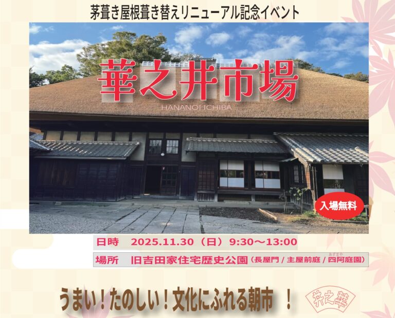 旧吉田家住宅は、名主であった吉田家の豪農ぶりが分かる江戸時代末期の貴重な文化財です。