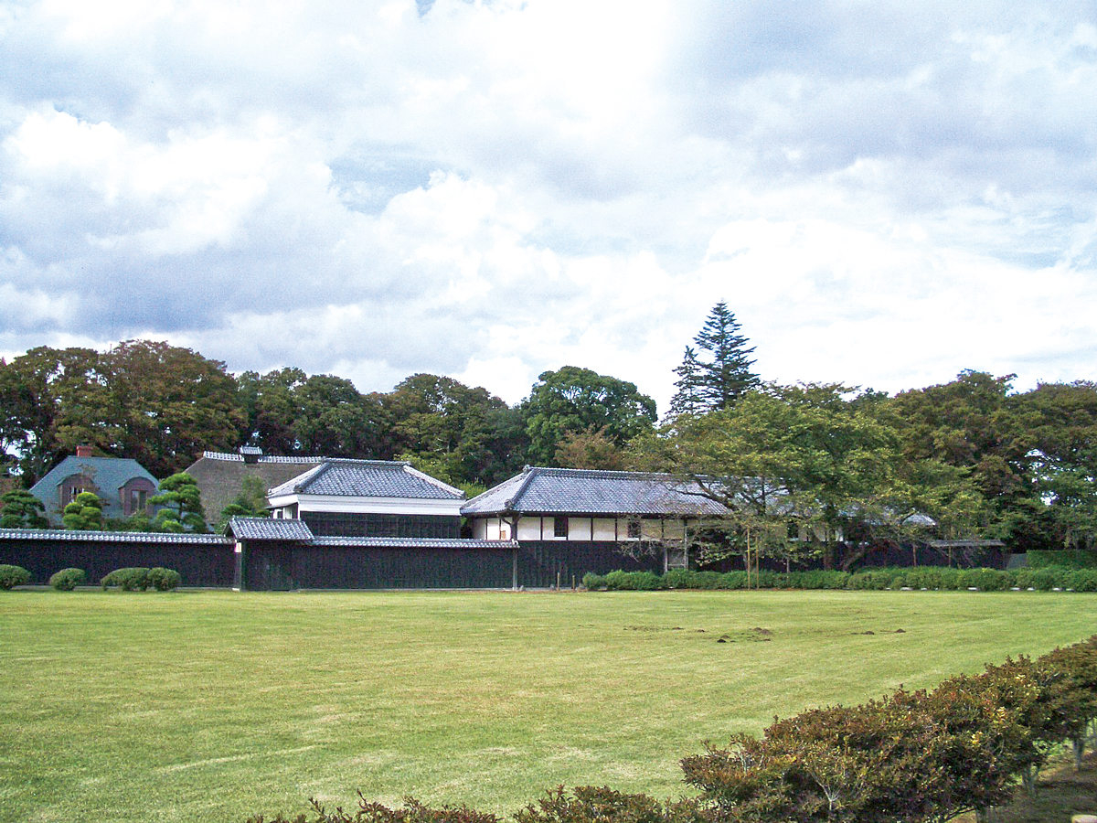 東側には枯山水の庭と背後に竹林を望む新座敷庭園があり、明治期の銅版画にも描かれているサワラとスギの大木が残っています。