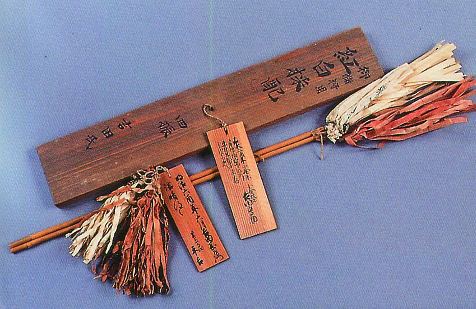 将軍の鹿狩り(ししがり)に用いられた紅白の采配